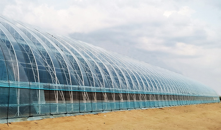 1. 該溫室由全鋼骨架、蓄熱水箱、雙膜雙被等裝配而成,結構輕便,采光角度科學合理,實現了通風和卷簾的自動控制。具有采光和保溫性能好、蓄放熱量大、承載力強等特點。